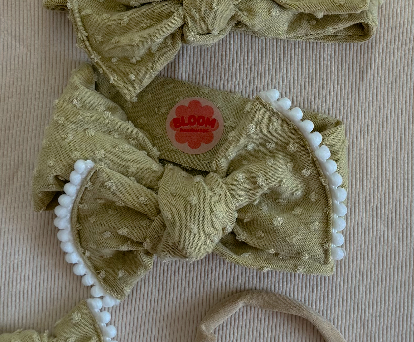 extremely low quantity golden sage dot tie on headwrap stretchy and adjustable