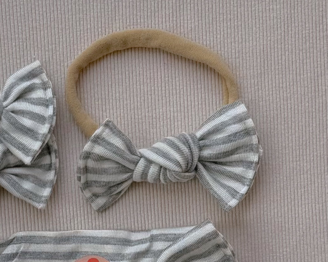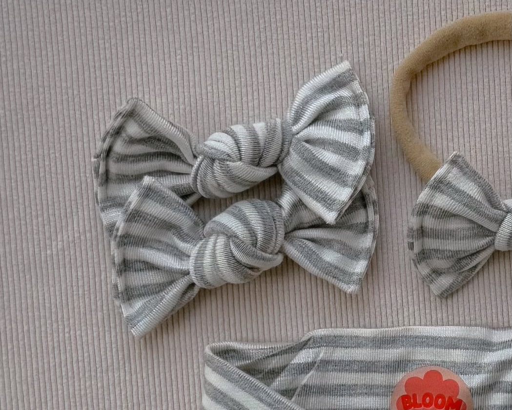 heather grey mini stripe bloomclips or nylon headband - alligator clips for the bloomclips! nylon headband is one size fits most