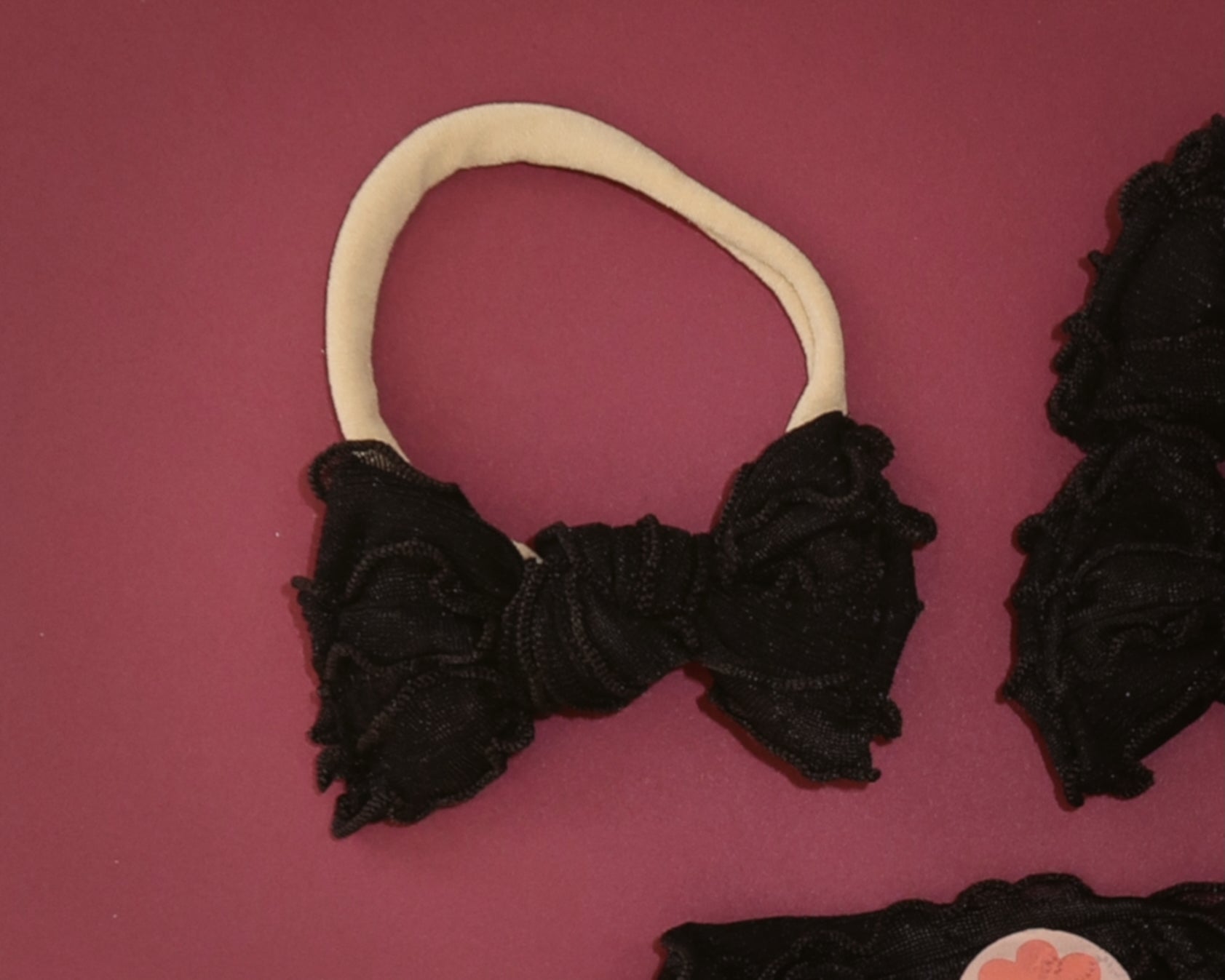 Keep your little one's hair perfectly in place with our Black Ruffle BloomCLIPS or Nylon Headband. Designed for comfort and style, this versatile accessory features a soft ruffle detail that adds a touch of elegance to any outfit. The gentle nylon construction won't tug or irritate delicate skin, making it ideal for active toddlers and babies.