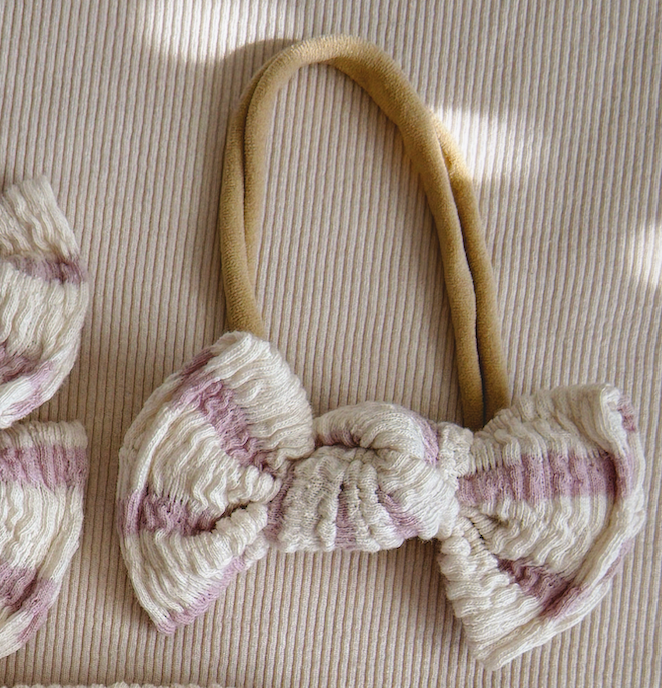 Adorable lavender headband designed for your baby girl with a charming texture stripe detail. Choose between convenient BloomCLIPS for easy on-and-off wear or a soft nylon headband for all-day comfort. Perfect for photos, outings, or everyday styling. Gentle on delicate skin and adjustable to grow with your little one.